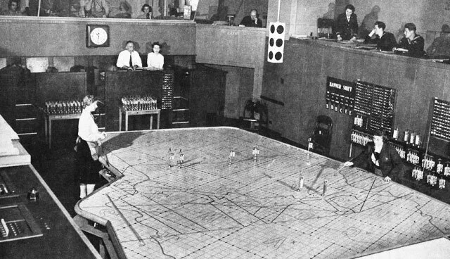 In 1938, the UK began to build the Chain Home, a series of radar stations along the coast to detect and track aircraft. There were mainly two types of radar technologies that tracked aircraft at different altitudes. The information captured by the Chain Home and the ground observers was relayed through the Dowding system, a dedicated land-line telephone network to the central command center. In the RAF's Operations Room, you see that there is a huge table with a map of the British Isles and neighboring coastal regions of Europe. While the RAF Plotters constantly on the phone receiving the latest findings from the Chain Home, they quickly translated the information about the current position and altitude of aircraft by moving the markers across the map using a tee stick. The marker includes the Squadron number, Identification Friend or Foe (IFF system), pinpoint position, estimated altitude, number of aircraft, etc. The personnel was further divided into Plotters, Filterers, and Controllers. The Filterer jobs are to filter out information from different sources and decided which information is accurate, and this relied on experience and was one of the challenging jobs in the room. Squadron Leader Mike Dean MBE, referring to the Filterer's job, explained: "The mass of raw information generated by the Home Chain of radars had to be processed before it could be presented to the Operations Room. The complexity of the Filter Room task cannot be overstated. Much depended on the Filterer's detailed knowledge of the performance and limitations of each individual radar and their confidence in the ability of the crews on watch. The Filterer's ability to correlate the information quickly and assess the probability of the true radar picture underpinned the successful operation of the whole radar system." (Squadron Leader Mike Dean MBE, Historical Radar Archive, March 2011) Finally, the Controllers constantly observed the huge map table and reported back to a group of people include the fighter plots, Air Raid Warning Officers in the Chain Home radar stations. The Filter Room became the core of the air defense system. Every aircraft movement was carefully identified and logged into the system.