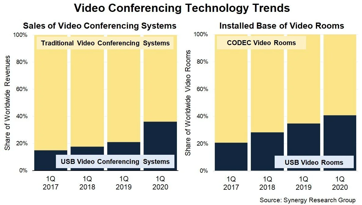 "The biggest benefactors of the USB boom are vendors providing USB conferencing cameras, with Logitech leading the charge," said Jeremy Duke, Synergy Research Group's founder and Chief Analyst. "These USB cameras work easily and cost-effectively with VaaS services from companies like Zoom, Microsoft Teams, Google, and others, and form a symbiotic relationship that is helping to propel the market. COVID-19 has now created even stronger momentum in a market that was already finding its stride."